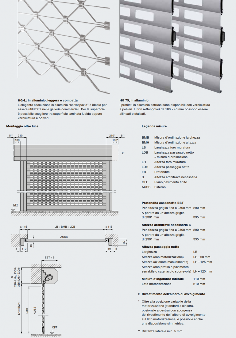 La griglia avvolgibile RollMatic, grazie alla sua costruzione compatta con max. 335 mm di altezza architrave e profondità soffitto, è ideale per i negozi che hanno limitazioni di spazio.