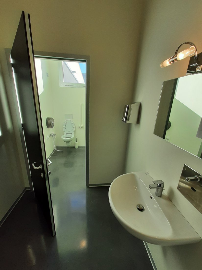 Sulle pareti perimetrali sono state installate serrande avvolgibili coibentate Hormann con le relative porte di uscita di sicurezza.
