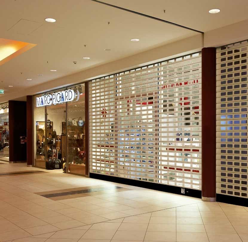 La griglia avvolgibile RollMatic, grazie alla sua costruzione compatta con max. 335 mm di altezza architrave e profondità soffitto, è ideale per i negozi che hanno limitazioni di spazio.