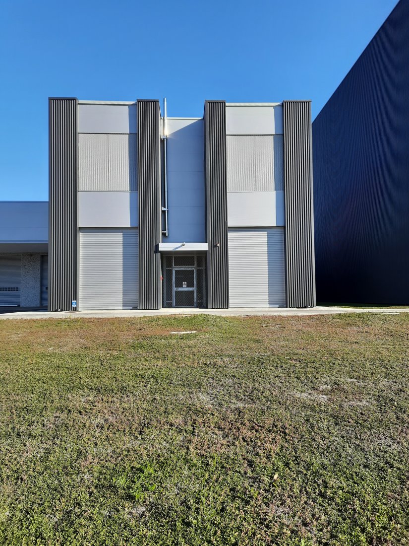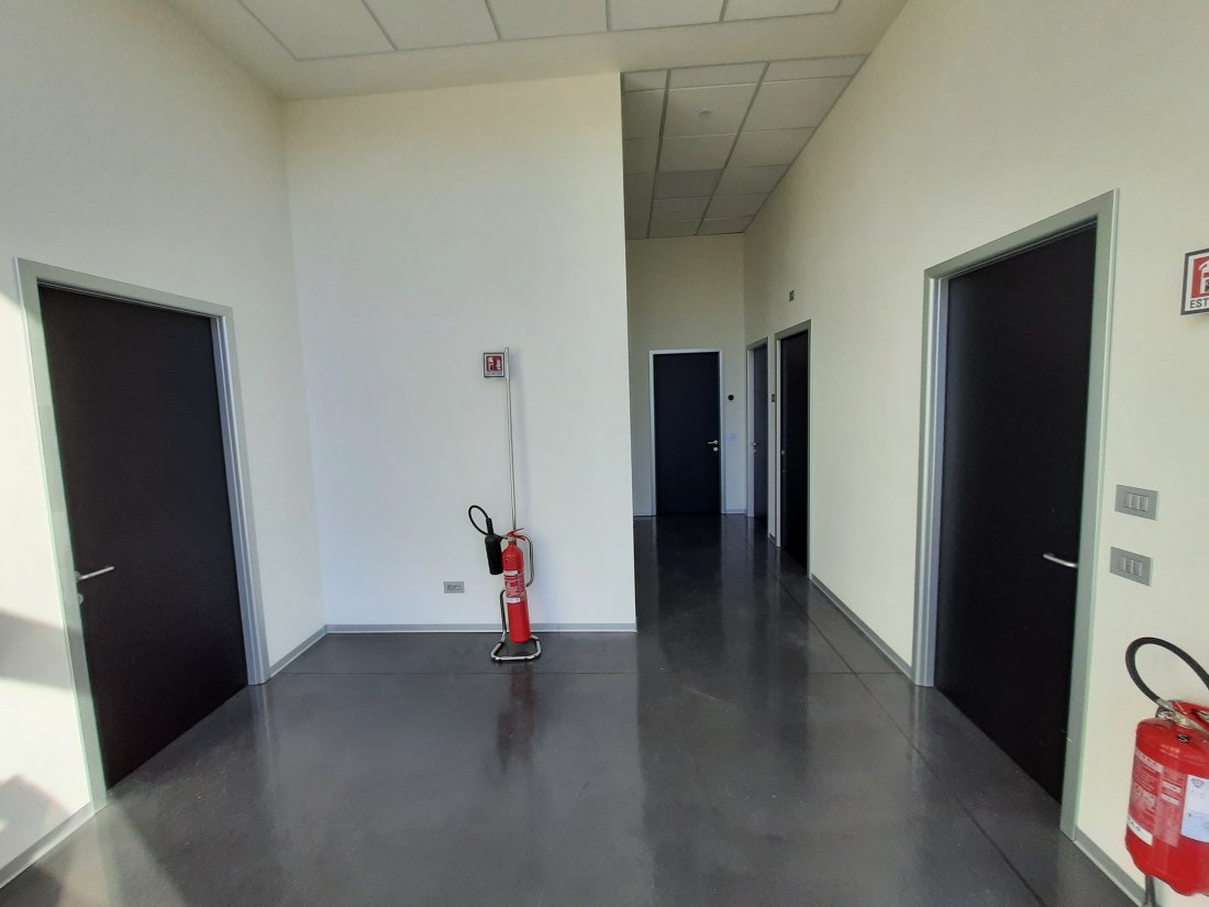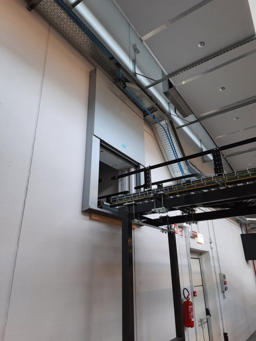 Sulle pareti perimetrali sono state installate serrande avvolgibili coibentate Hormann con le relative porte di uscita di sicurezza.